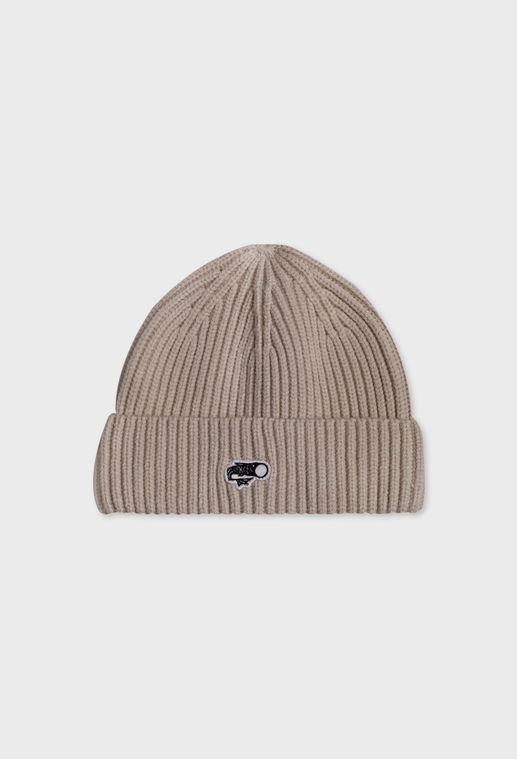 ALAND FISH WAPPEN RIBBED BEANIE (LIGHT BEIGE)