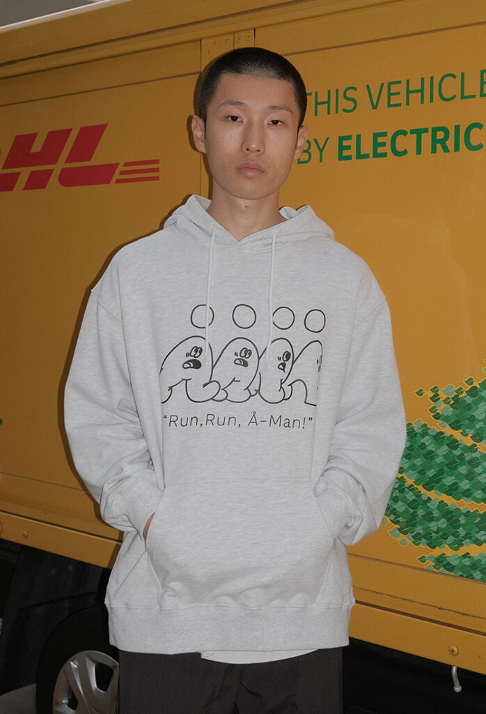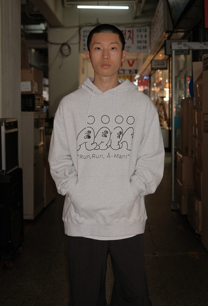 ALAND RUN RUN A MAN LOGO HOODY (LIGHT GREY)