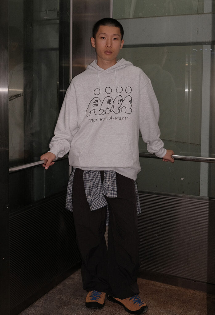 2/ 에이랜드 대표 캐릭터인 에이맨 로고 나염으로 브랜드 아이덴티티를 강조하며, 심플하면서도 세련된 느낌을 더했습니다.