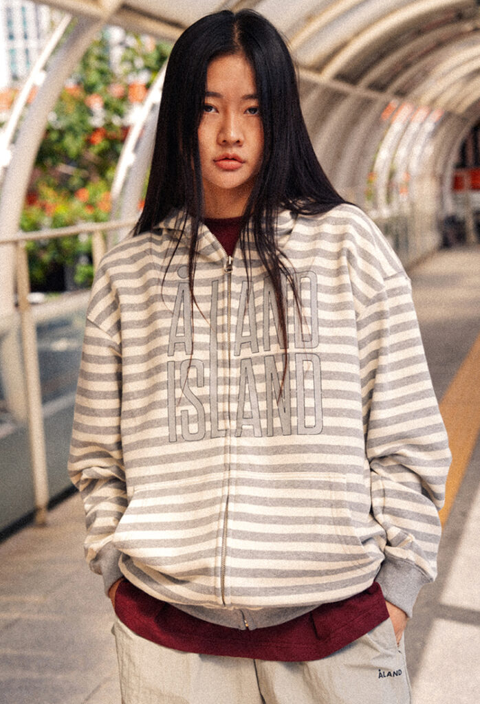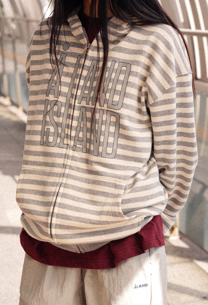 ALAND ISLAND LOGO STRIPED HOODY ZIP-UP (MELANGE GREY)