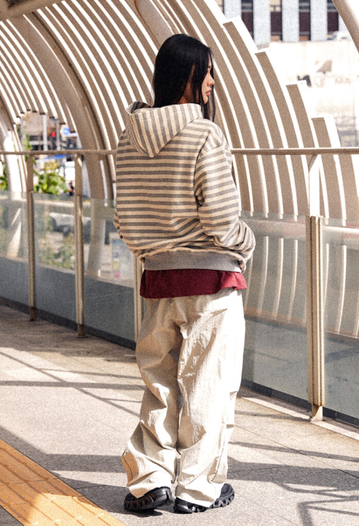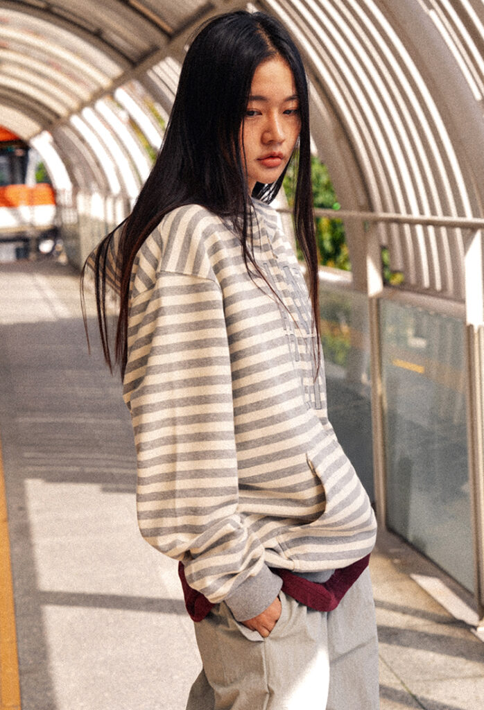 3/ 오버핏 실루엣으로 편안하게 떨어지며, 군더더기 없이 깔끔한 디자인으로 데일리룩에 부담 없이 매치하기 좋습니다.