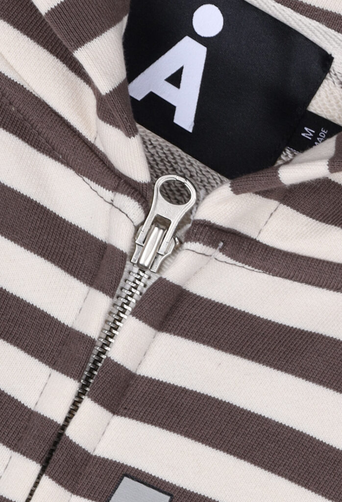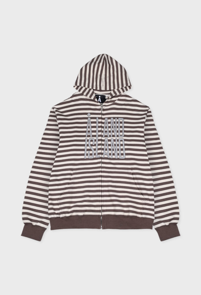 ALAND ISLAND LOGO STRIPED HOODY ZIP-UP (BROWN)