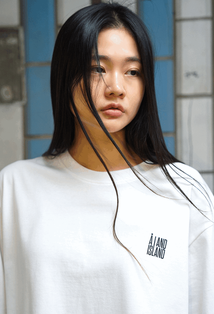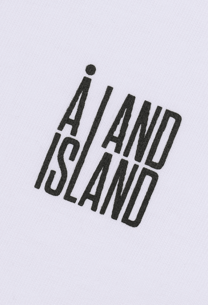 2/전면에 ALAND ISLAND 로고 나염과 후면 어깨 나염을 재치있게 표현하여 브랜드의 아이덴티티를 드러냅니다.
