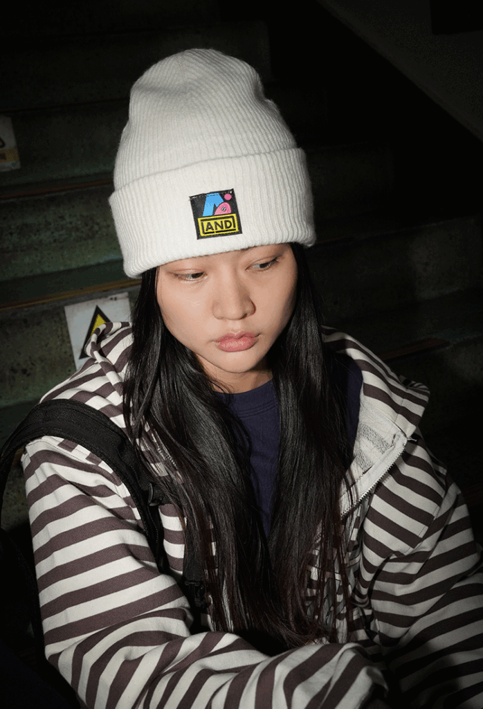 ALAND A MAN PATCH LOGO WOOL BEANIE (IVORY)