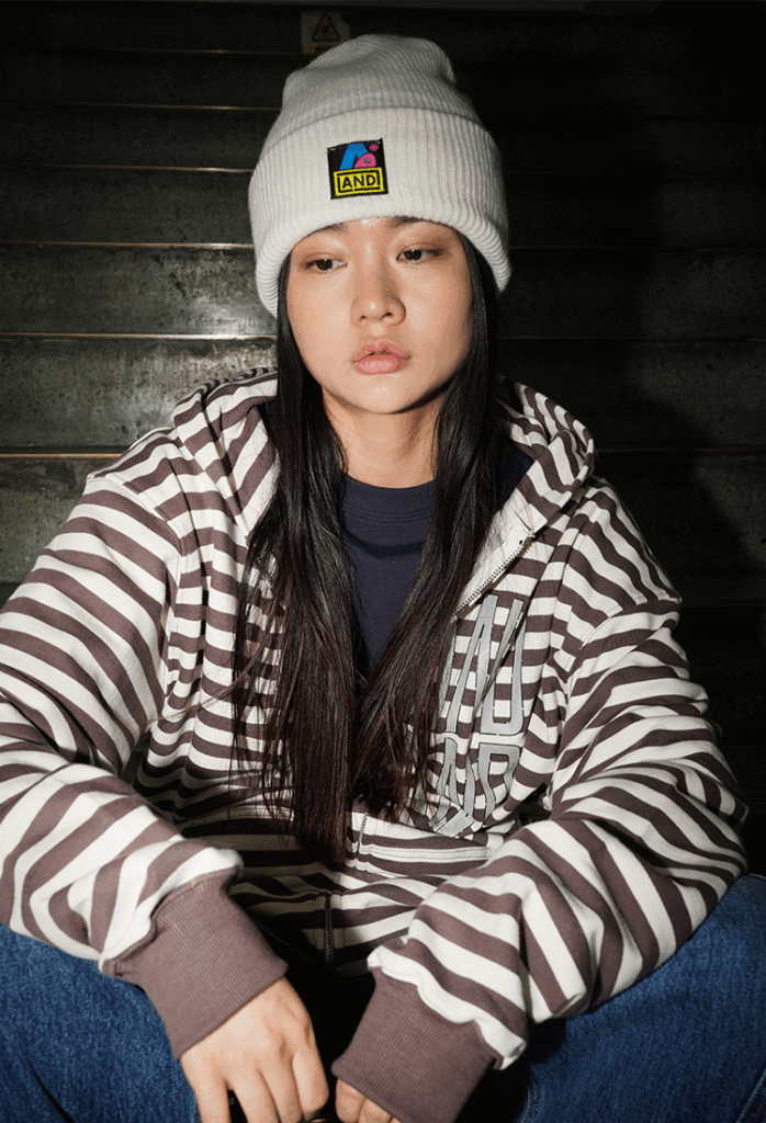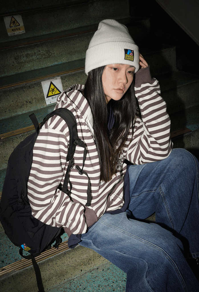 1/ 전면 중앙에는 에이랜드의 아이덴티티를 담은 A맨 포인트 라벨이 봉제되어, 유니크하면서도 세련된 감각을 드러냅니다.